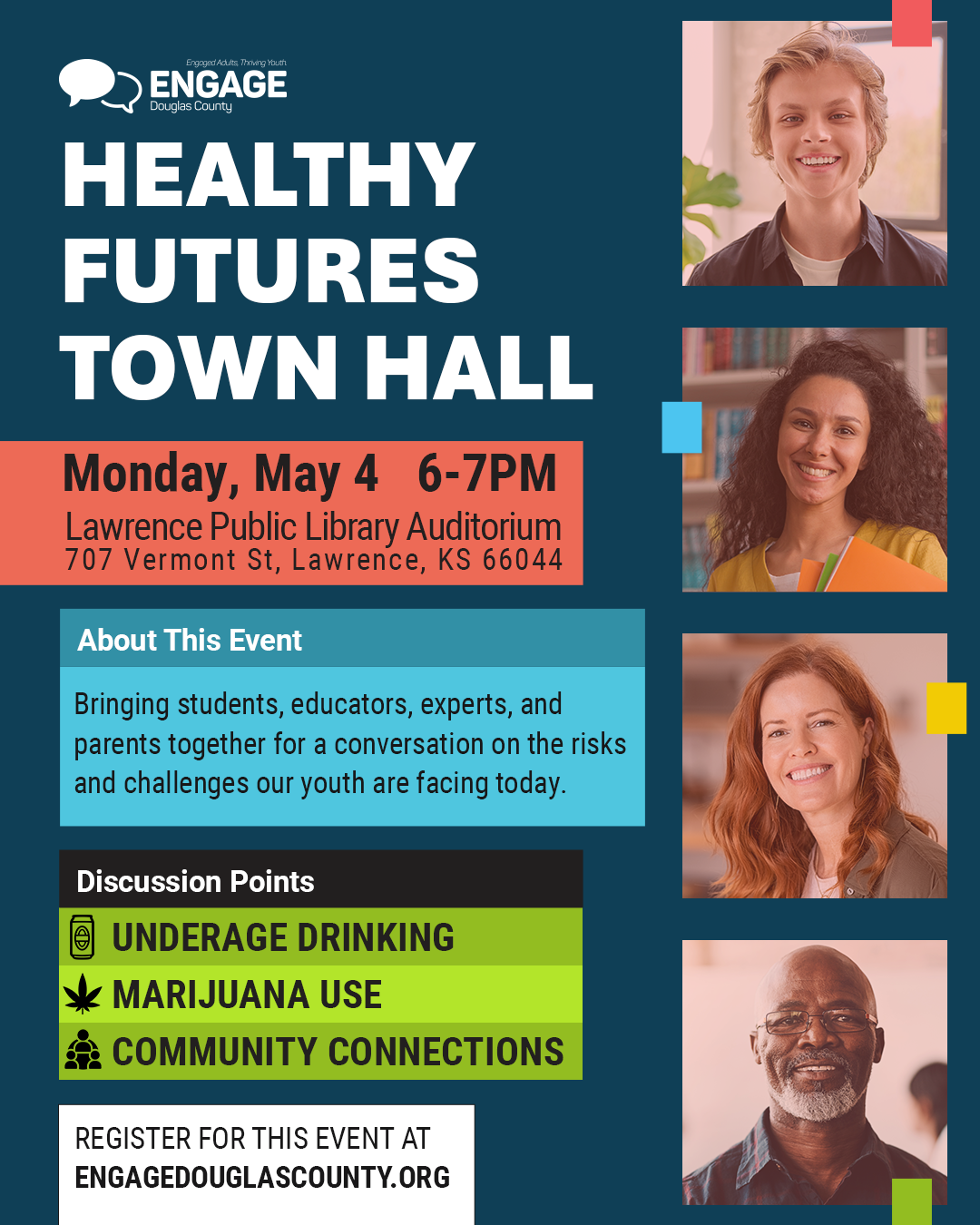 Students, educators, experts, and parents are invited to come together for a community-led discussion regarding the risks and challenges our youth are faced with today. Uncover protective factors and share your insight so we can work towards a safer, healthier Douglas County!
